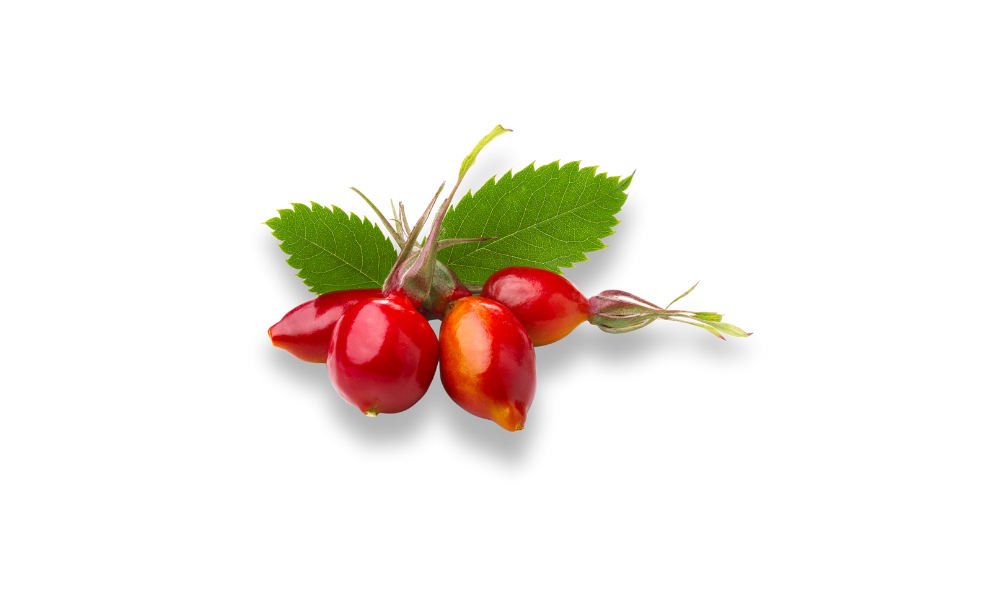 pomme*, hibiscus*, cynorrhodon*, datte (datte, farine de riz), fraise, arôme naturel de fraise, écorces d’orange*, arôme naturel de framboise, framboise*.